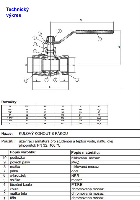 Materiál: mosadz, poniklovaná mosadz, guľa: chrómovaná mosadz