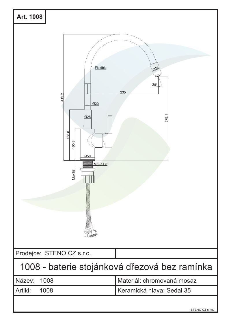 Kuchyňská vodovodná batéria s flexi bielym ramienkom, CHROM/ZELENÁ