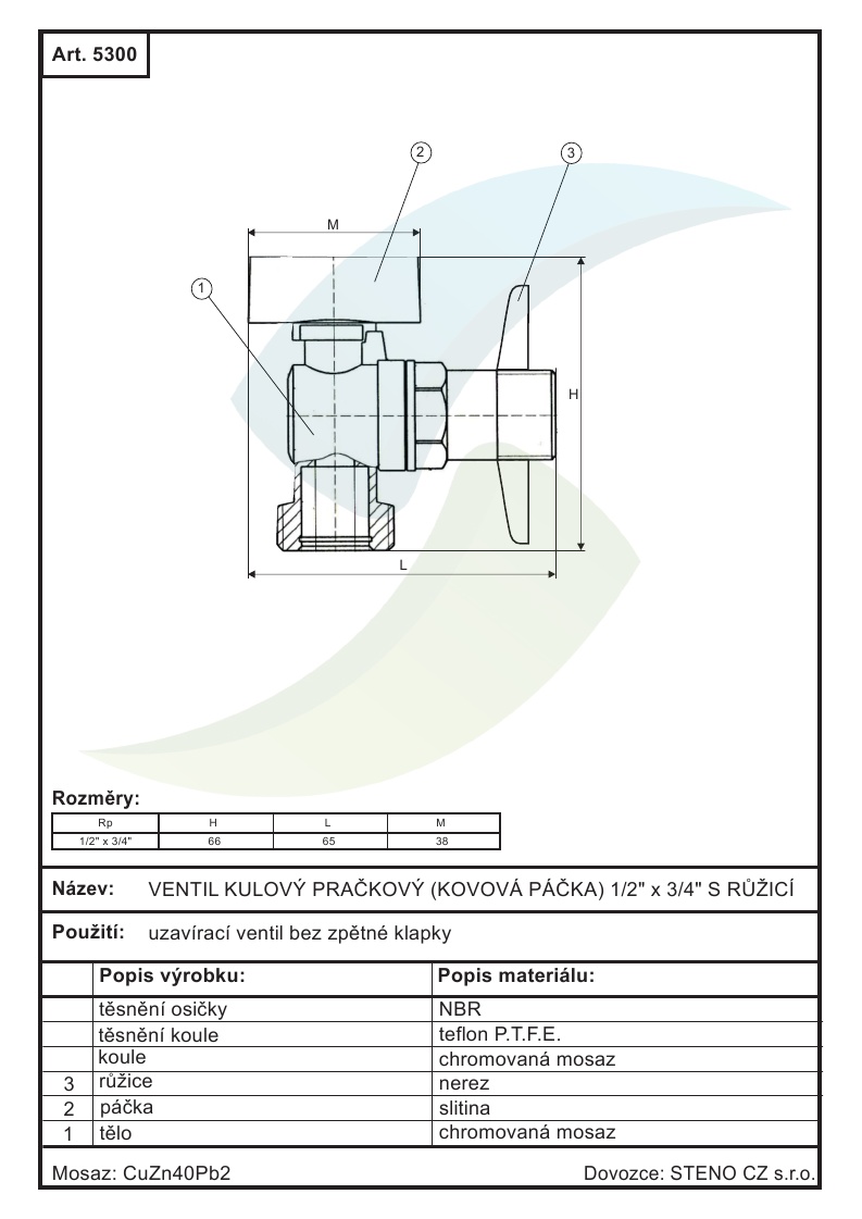 Ventil guľový práčkový 3/4" x 1/2" s ružicou.