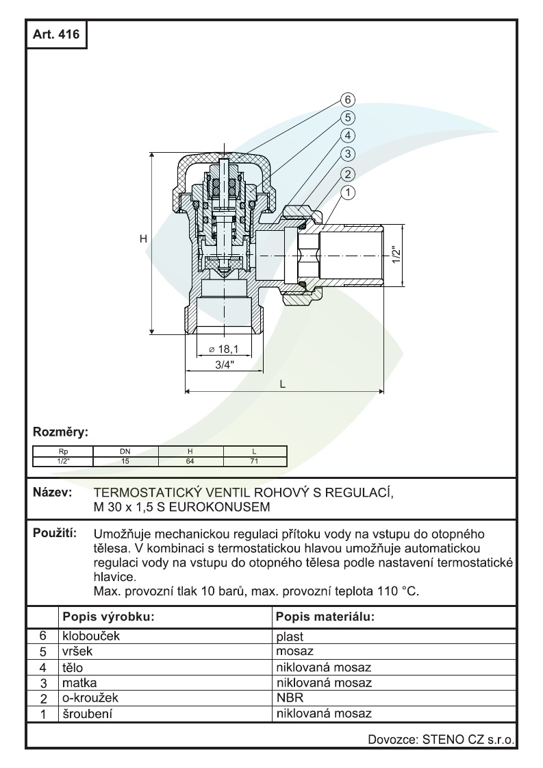 M 30 x 1,5, maximálny prevádzkový tlak 10 barov, maximálna prevádzková teplota 110 ° C